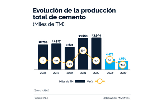 Para el cierre de 2023, se espera que la producción local de cemento registre una caída de -5,9%, mientras que el consumo interno caería un -4,5%; debido a las menores expectativas empresariales generadas por el ruido político y la conflictividad social, los altos costos de transporte y el incremento de los precios de los insumos; a ello se suma el aumento en la probabilidad de ocurrencia de un fenómeno de El Niño fuerte con presencia de lluvias severas hacia finales de 2023 y primer trimestre 2024, lo que perjudicaría la ejecución de obras; así refiere el último “Informe del Mercado de Cemento” de la consultora MAXIMIXE.
