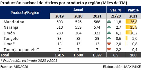 Producción nacional de cítricos crecería 1,9% al cierre de 2022